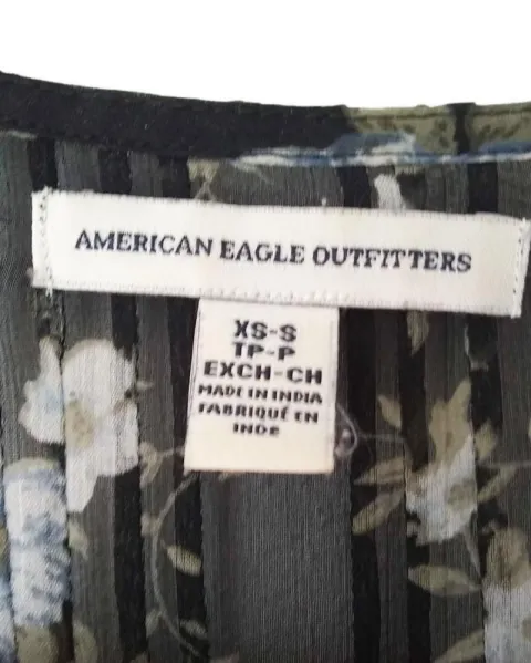 Kimono floral American Eagle. Kimono negro con flores azul gris talla XS/S oversize, queda a una talla M, con manga amplia de la marca American Eagle. El producto es usado en excelentes condiciones sin detalles. Proviene de un hogar libre de humo de tabaco y mascotas.MedidasHombros: 42 cmsSisa: 68 cmsLargo: 74 cms100% poliéster