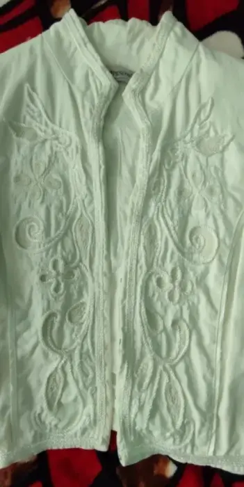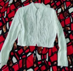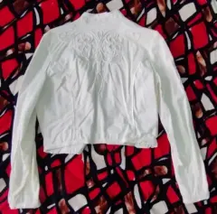 Lindo saquito con bordados. Saco tipo toreritocon bordados color crema, de tela de manta con bordados, talla Ch.