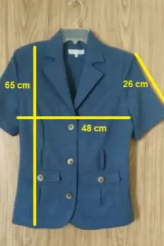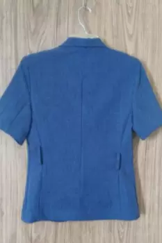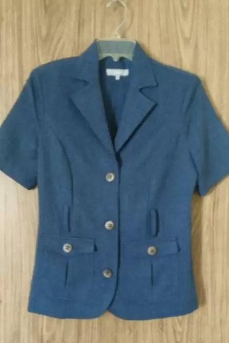Moderno Saco manga corta. Este moderno saco talla 28 es ideal para una tarde calurosa en la ciudad o para ir a algùn evento en la playa y lucir con estilo.Color neutal en azul facil de combinar , tiene hombretas ligeras se las puedes dejar o quitar como te agrade, cuenta con bolsas que permite moverte (con tus llaves etc.) , pero luciendo hermosa, cuenta con presillas para que puedas adaptarle un cinturòn o un listòn que pueda combinar con tus zapatos y/o Pantalòn.Definitivamente un saco en manga corta no es facil de encontrar por lo cual lo hace muy autèntico y por ser saco te da un toque moderno y elegante para cualquier ocasiòn (adèmas si usas accesorios como reloj o pulseras wow aquì es donde las podràs lucir).No pierdas esta oportunidad y adquierelo!!! :)