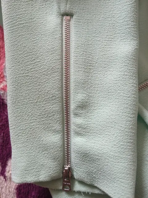 Talla EX, color verde menta, cierre en mangas y bolsas