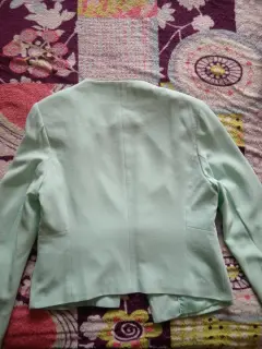 Moderno saco verde menta. Talla EX, color verde menta, cierre en mangas y bolsas