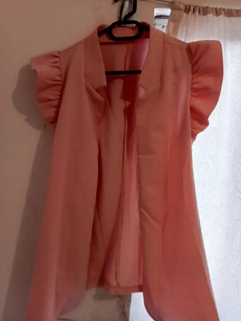 Hermoso saco color rosa pastel talla mediana tela ligera y fresa