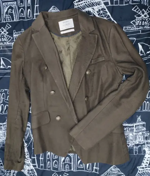 Tenemos en venta, un saco color botella clasico con botones en los costados de las mangas, talla S, marca Bershka Outerwer, se encuentra en buenas condiciones.Saludos.