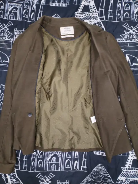 Saco Bershka. Tenemos en venta, un saco color botella clasico con botones en los costados de las mangas, talla S, marca Bershka Outerwer, se encuentra en buenas condiciones.Saludos.