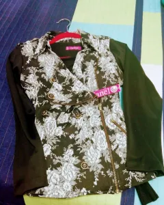 Saco blusa con cierre,floreado entre blanco y negro con cierre cruzado yangas negras