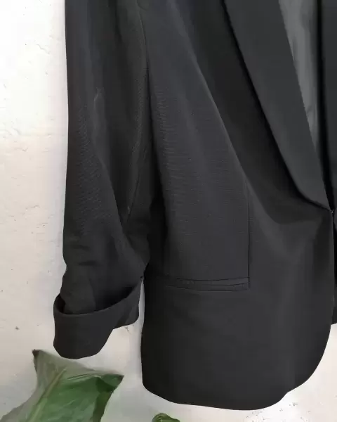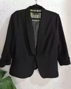 Saco de vestir casual en color negro.Talla 13A estrenar sin etiqueta, en perfecto estado.Broche al frente tipo cangrejo.Manga 3/4Forro en polyesterTela: polyester con elastanoQueda bien desde una talla mediana.