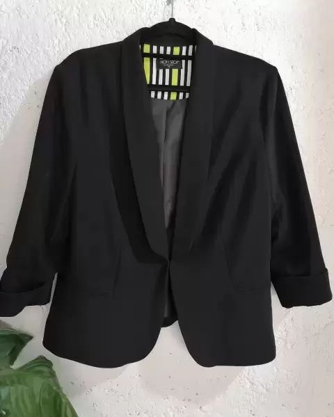 Saco color negro Non Stop. Saco de vestir casual en color negro.Talla 13A estrenar sin etiqueta, en perfecto estado.Broche al frente tipo cangrejo.Manga 3/4Forro en polyesterTela: polyester con elastanoQueda bien desde una talla mediana.