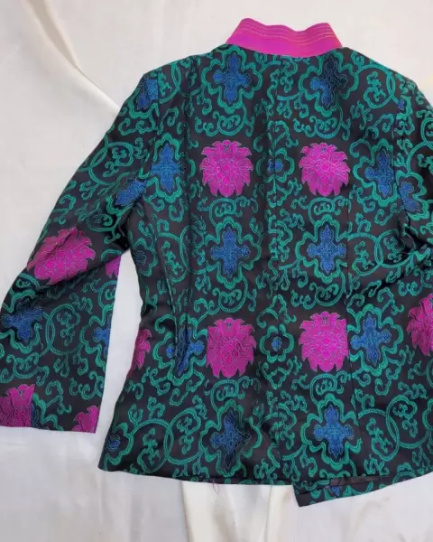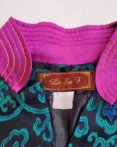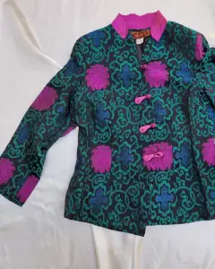 Saco colorido. Los colores son super vivos, la etiqueta se borró, pero es una talla s/m, adjunto medidas.Hombro -hombro: 39cmAxila-axila: 50cmCintura: 45cmLargo desde el hombro: 66cm