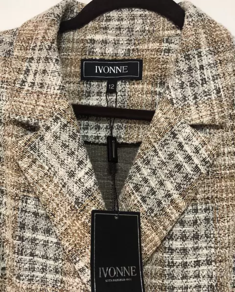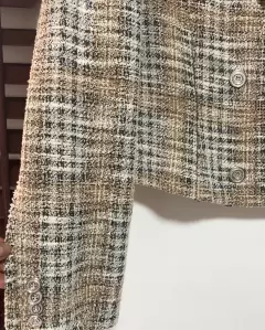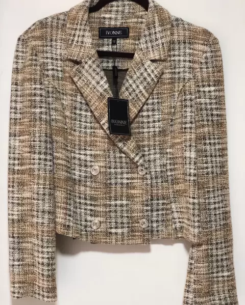 Saco corto cruzadoIvonneBeige y cafeTalla 1260% poliéster, 40% algodón