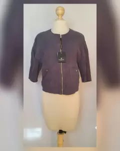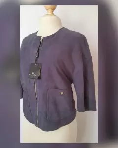 Saco cropped en piel caprina acabado ante color AZUL DE PRUSIA, cuello redondo, cierre p/cremallera tono DORADO BRILLANTE, 2 bolsos delanteros plastrón c/snap y manga 3/4. Talla M. Dimensiones cms: 54 hombro, 53 axila, 54 zona baja, 51.5 largo, 25 largo manga. 100% piel caprina. P/limpieza c/especialista.***LA PIEL DE ESTA PRENDA ES EXTRA SUAVE***ESTE PRODUCTO SE HA PRODUCIDO EN TENERIAS CERTIFICADAS COMO "LEATHER WORKING GROUP ORO", UTILIZANDO ENERGIAS RENOVABLES Y TECNOLOGÍAS QUE REDUCEN EL CONSUMO DE AGUA***