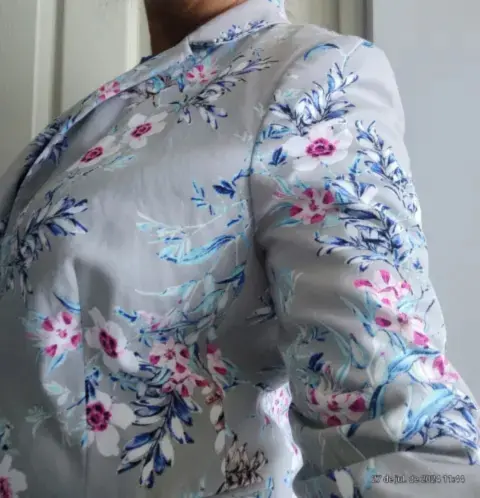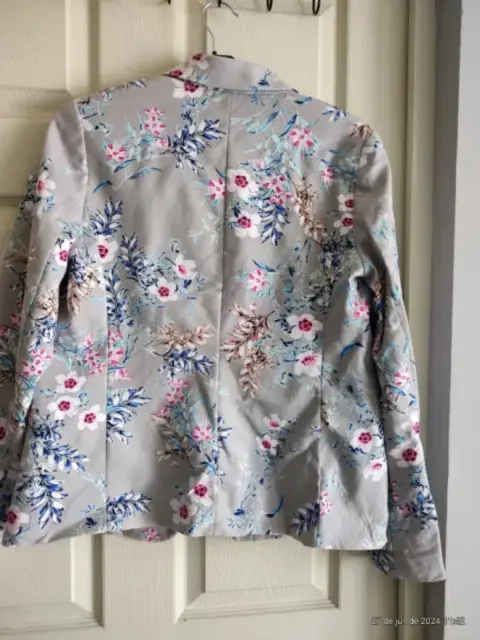 Hermoso, saco estampado de flores, talla mediano, con bolsas, de hombro a hombro 40 CM largo 50 de busto, largo 60 cm.