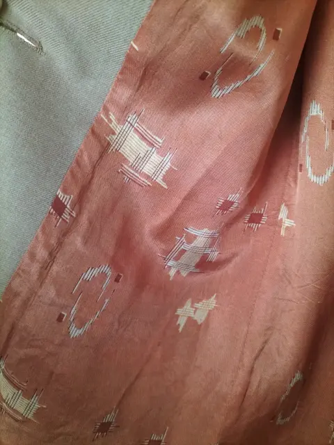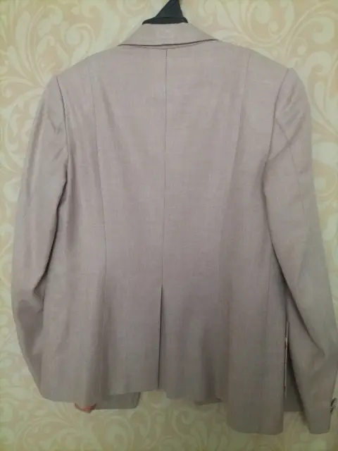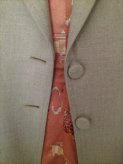 Saco de lino beige con forro color naranja, hecho a mano por sastre, bolsillos al frente y en perfecto estado