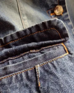 Mezclilla rígida ideal para vestidos o casual. Solapa retro, bonitas en puños y frente, bolsillos y forma acinturada