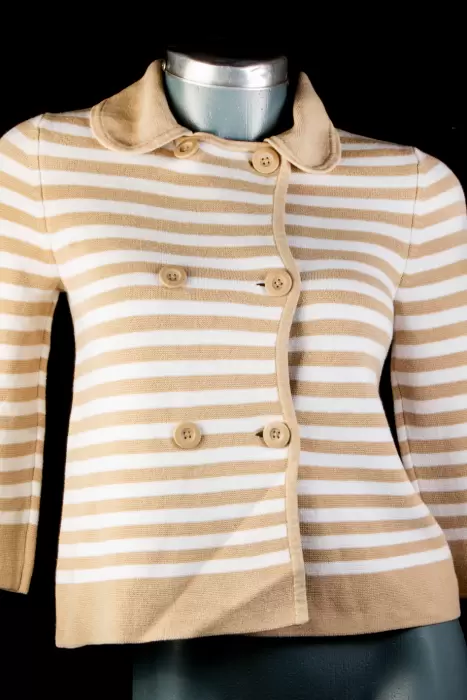 Coqueto saco de punto Old Navy, de estilo retro. Es talla S, mide 43 cm de axila a axila y 49 cm de largo.