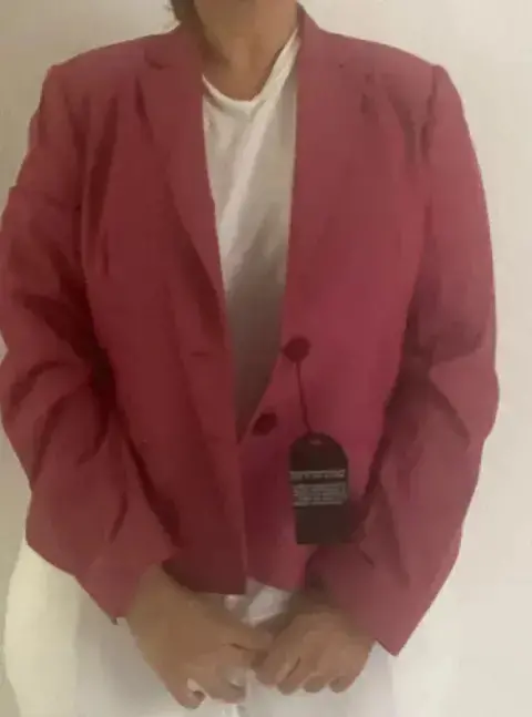 Saco de vestir color vino reforzado con forro color rojo claro
