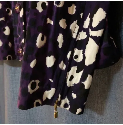 Hermoso saco estampado animal print en morado, corte súper ajustable, manga larga con cierre al final , cuello mao