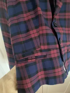 Saco de vestir, talle L, colores azul con rojo, de axila a axila mide aproximadamente 50cm, en perfecto estado.