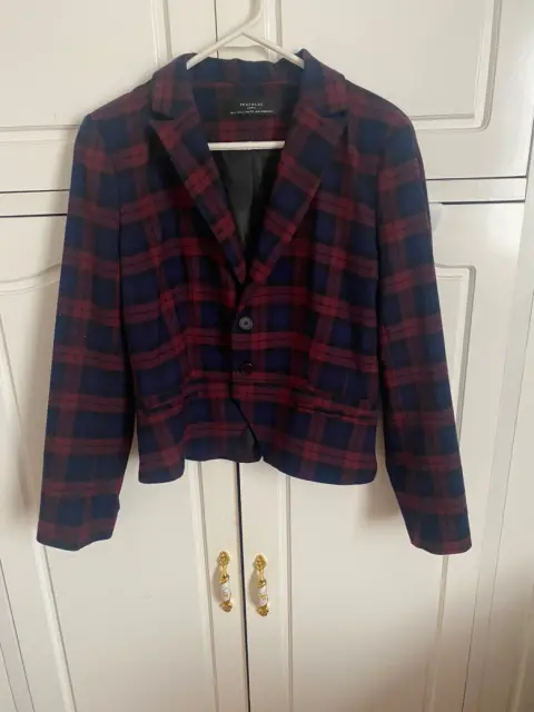 Saco de vestir Zara. Saco de vestir, talle L, colores azul con rojo, de axila a axila mide aproximadamente 50cm, en perfecto estado.