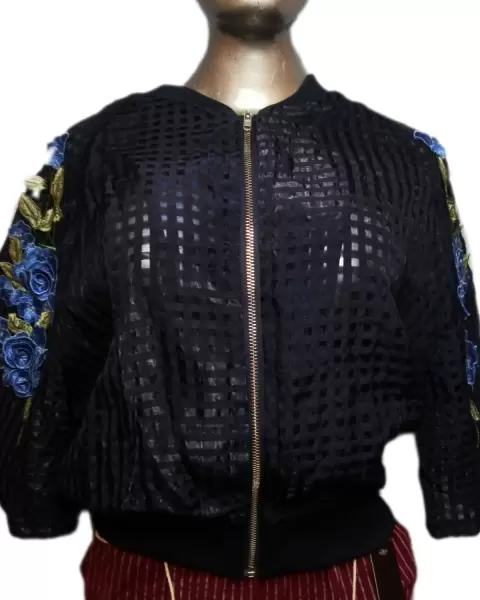 Saco estampado color azul marino talla grande. Saco talla grande estampado de los brazos, delgado.