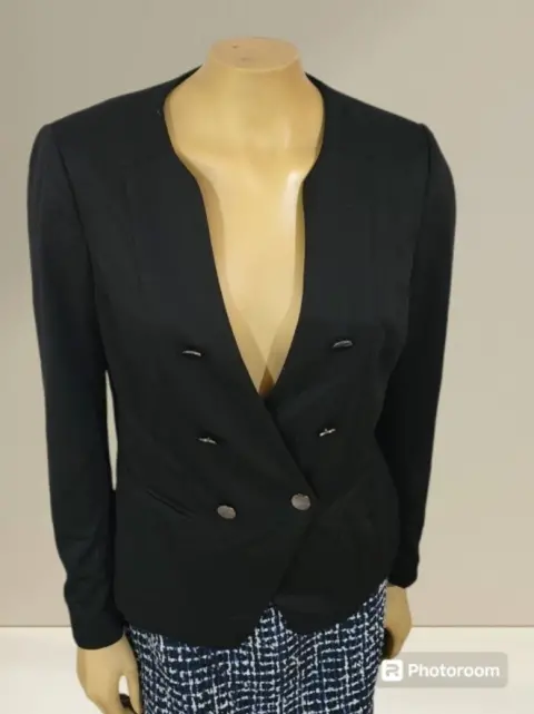 Saco Formal Blazer H&M. Saco Formal Blazer H&M, talla 14, color negro solido, cuello en V, Manga larga, hombros semiachonados, acentos de botones al frente, bolsas faux, Hecho de polyester y algodon, mide 40cm de hombro a hombro, 50cm de axila a axila, 42cm de cintura, 64cm de largo del hombro hacia abajo con 60cm de Manga, previamente usado en buen estado cosmetico.