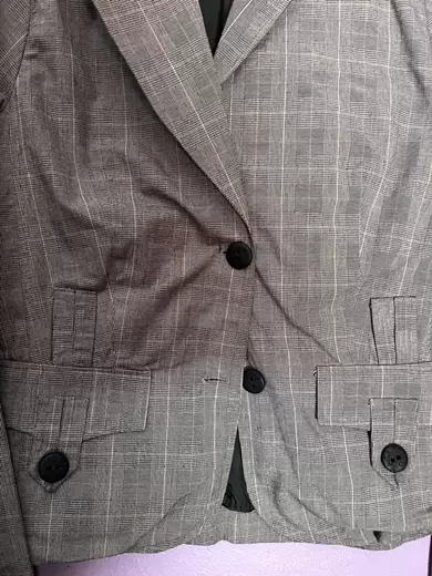 Saco gris dama. Saco gris claro para dama talla M. Tiene rayas blancas sutiles, todos sus botones y en perfecto estado. Talla M