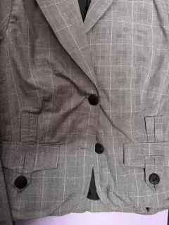 Saco gris claro para dama talla M. Tiene rayas blancas sutiles, todos sus botones y en perfecto estado. Talla M
