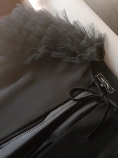 Saco Ivonne. Excelente saco talla 12 reducida aproximadamente talla 10 excelente condición en negro manga corta de olán padrísimo para usarlo en fiesta o en oficina!