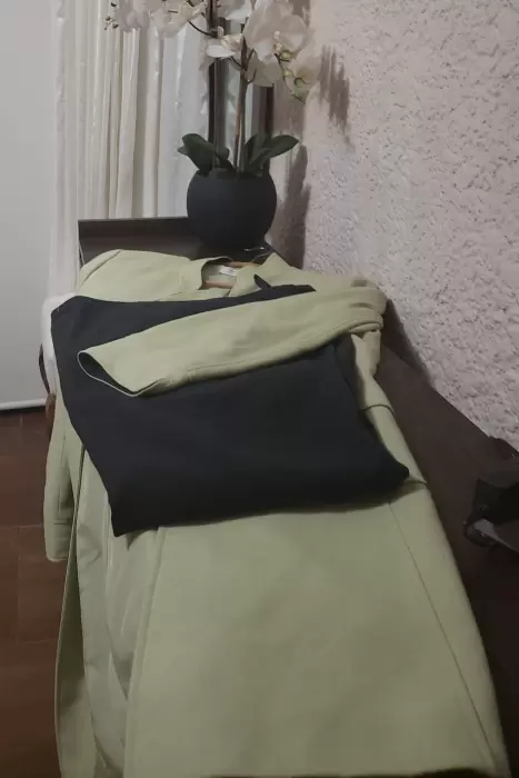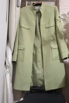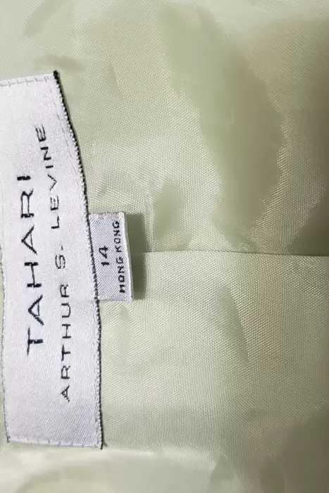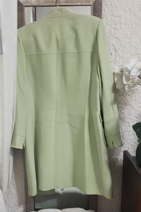 Saco largo,marca TAHARI, usado una sola vez en un evento por 30 minutos.Color divino (verde claro) y con bolsillos.