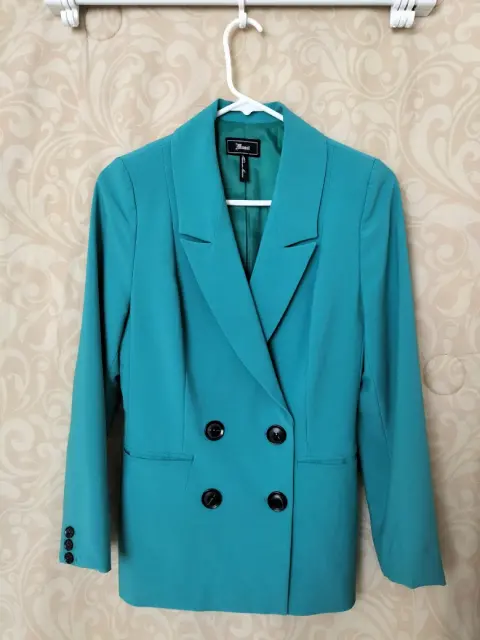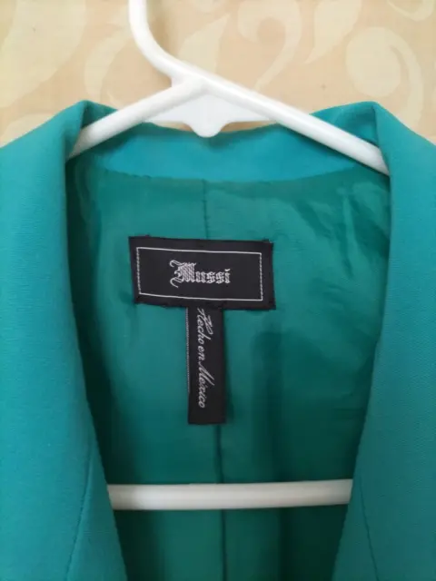 Saco formal marca MUSSI azul turquesa, talla 30 en perfecto estado, puesto en dos ocasiones, botones al frente y al interior