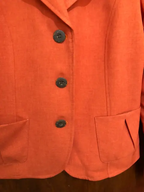 Elegante saco naranja con botones café Bolsas frontales que lo hacen muy práctico Cinturilla trasera que moldea tu cuerpoMedidas:Hombro 40cmAxila 48Cintura 43Manga 61Largo 58Talla 11Viene con forro