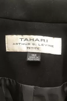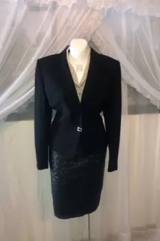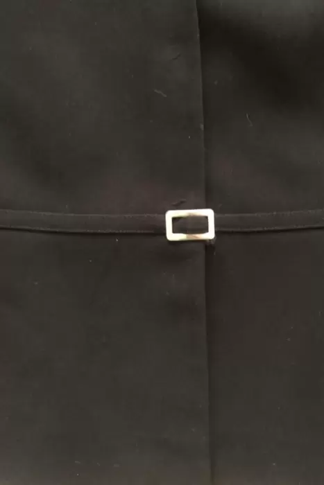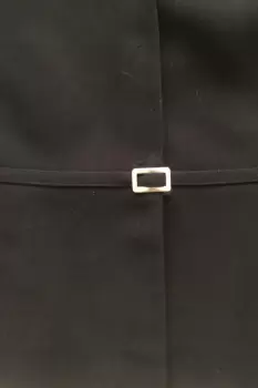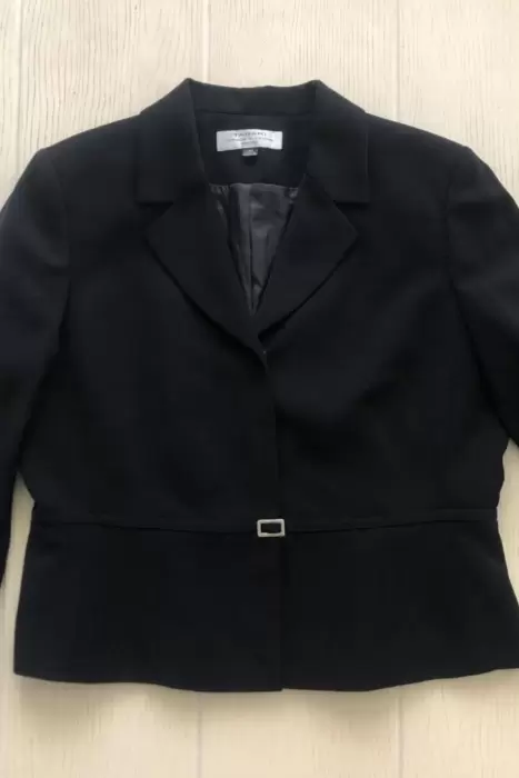 Blazer o saco negro, viene con botones de broche ocultos y decorado de cinta en la cintura que simula un cinturon con pequeño broche, el corte es acinturado con forro. Con hombreras.Medias:hombro a hombro: 45 cmAxila a axila: 55 cmlargo: 56 cm