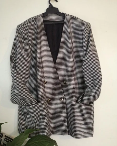 Saco pata gallo Blanco con negro , bolsas laterales , botones .. excelente para lucir fashion