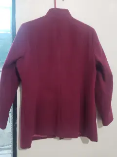 Color uva, tiene bolsas laterales, cuello japonés, forro, buena calidad, en excelentes condiciones, no viene amplio, 36/38