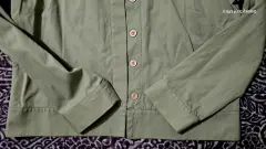 Saco verde casual, muy ligero, sin forro, ideal con jeans, cierra con botones.
