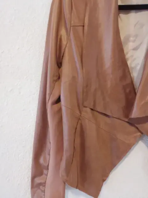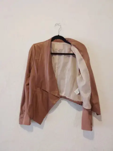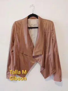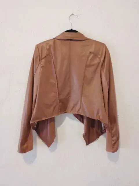 Blazer Vinipiel Asimétrico tono café claro, forro interno, poliéster y rayó, talla mediana, sin detalles.