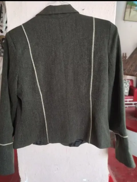 Saco y falda M. Conjunto dos piezas, saco y falda color verde militar, talla 30, marca Banana Limón