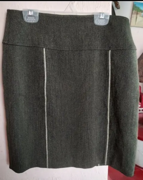 Conjunto dos piezas, saco y falda color verde militar, talla 30, marca Banana Limón