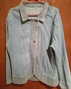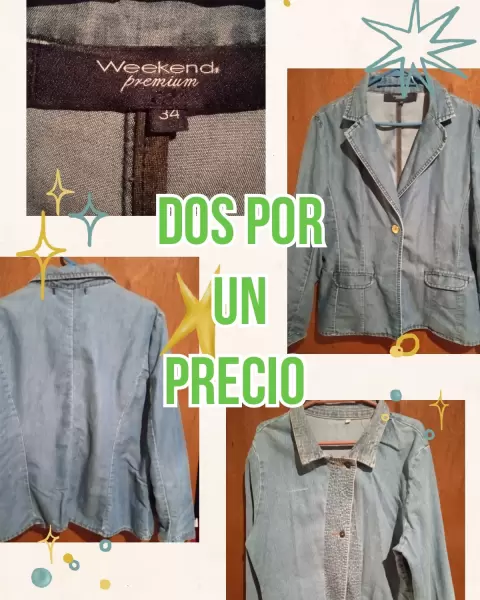 Dos sacos o bleizeeExcelente condicionesColor azul Mezclilla uno pequeñas bolsas El otro solo cuenta con un botón se pone cruzado y se ve muy bien