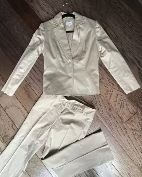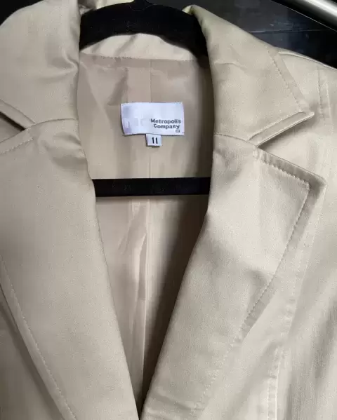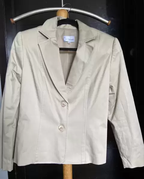 Traje sastre beige. Traje sastre de 2 piezasSaco casual beige De 2 botones al frente De axila a axila 47cm De hombro a hombro 41cm Manga 58cm