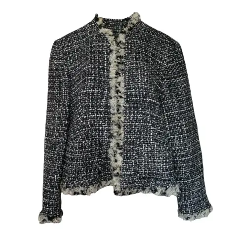 Valerie Stevens blazer. Diseño en tweed, botones en relieve, manga larga, puños y frente con pelo de lana para un acabado de lujo con botones, dobladillo recto y forro completo• Corte slim que impone tu figuraApariencia: 69% lana, 11% acrilico, 9% nylon, 9% rayon, 2% otras fibras