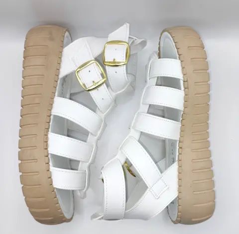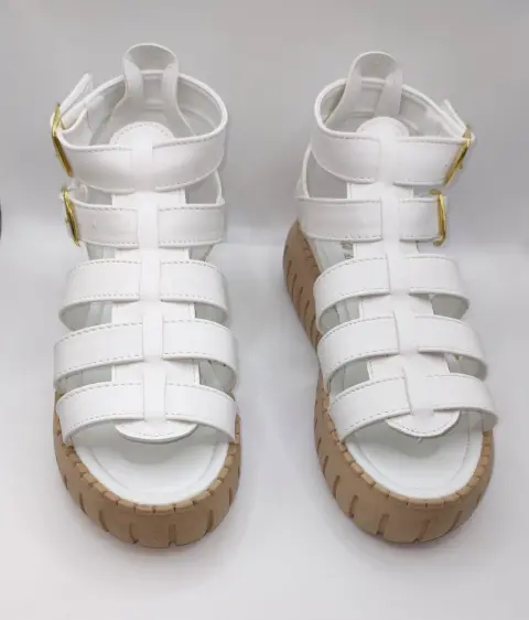 5 Huarache Chunky Blanco. Padrísimas sandalias color blanco, vinipiel diseño de gladiador romano doble correa con ebillas ajustables, suela plataforma 5cm es ligera muy cómoda. Mexicano Número #25cm. Si es tu primer compra en la App busca Código Promocional de descuento -$100 en tu primera compra: lucyrmxXqQJ9