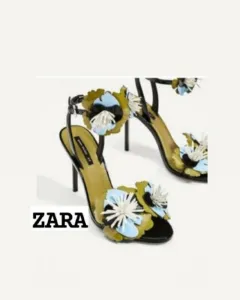lindas sandalias de tacon numero 10 zara, atadura al tobillo, con flores, en buen estado, si acaso tiene un ligero raspon en 1 de eĺlas (checar última foto) nada que afecte su uso.