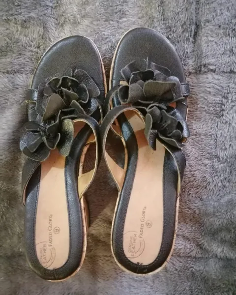 Bonitas sandalias de piel súper cómodas. Bonitas sandalias de piel muy cómodas nuevas con aplicaciones de flores