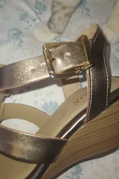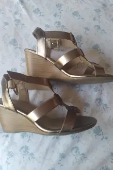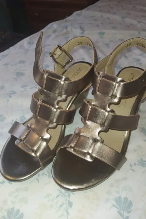 Bonitas sandalias doradas. Sandalias doradas #3Altura del tacón 7cmPuestas 1 vez