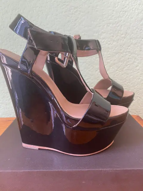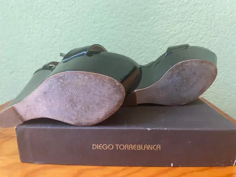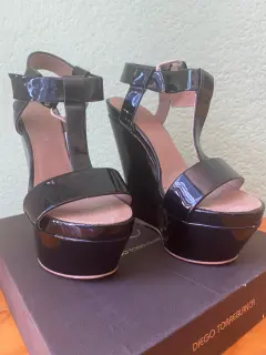 Super lindas cuñas/ sandalias negras de plataforma marca Diego Torre blanca de charol 🤩🤩🤩, totalmente de piel, usadas pero en excelente estado número 24.