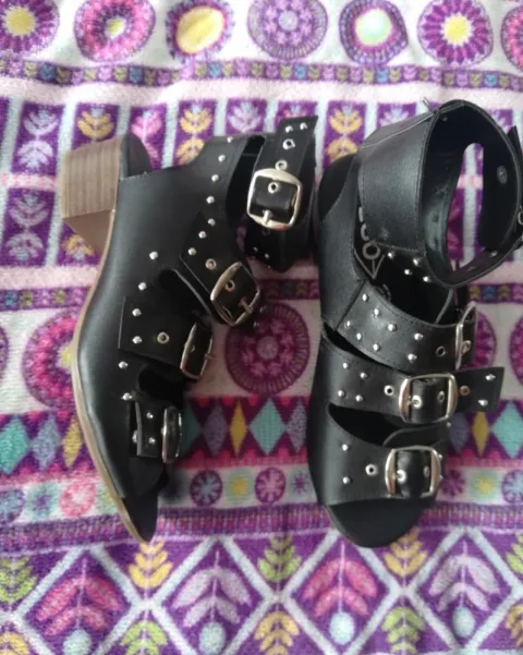 Bonito par de huarache para dama con hebillas y estoperolesEn color negroCompletamente nuevosNingún detalle