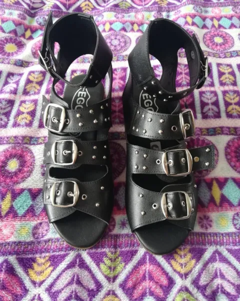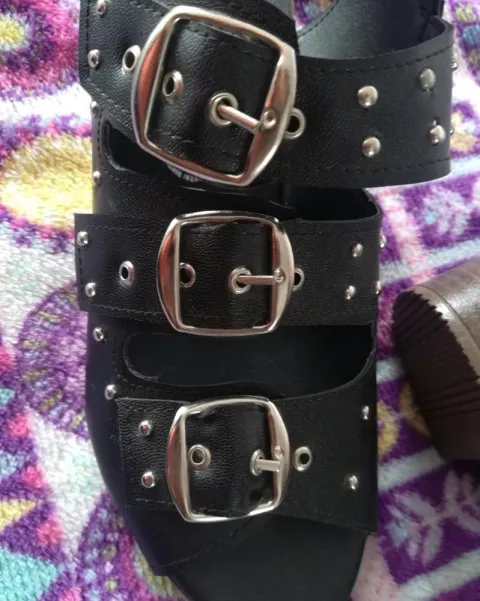 Huarache con hebillas. Bonito par de huarache para dama con hebillas y estoperolesEn color negroCompletamente nuevosNingún detalle
