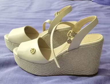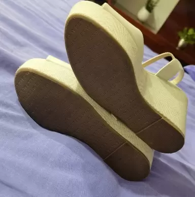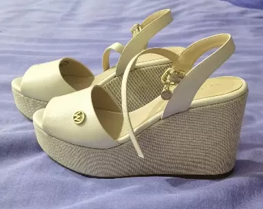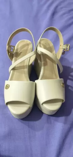Plataforma. Sandalias con plataforma número 6, color beige, Marca Nine west