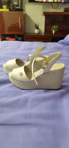 Sandalias con plataforma número 6, color beige, Marca Nine west