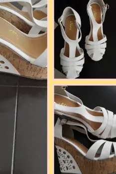 SANDALIA. Sandalias de tacon alto blancas con corcho